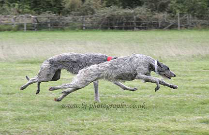 KILBOURNE OTTO aka FERGUS OWNER CHARLES MILLER WRITES ABOUT LODGE PARK LURE RACING Fergus (Otto) is the new Sussex lure coursing champion - well done "I am delighted to report that although he was the youngest dog running, Archie (your Otto) got to the semis at Lodge Park today and was just beaten by a nose. The winner was Ashtonbrook Juno of Torffric, who beat Wolfcastle Wild Orchid. The weather was pretty foul until 1.30 or so and spectator numbers were well down on last year but overall the running was better - only three or four dogs didn't take to the lure - and David Dimbleby was there with a BBC crew for a series on Buildings that Made Britain. We held a 12 dog cavalry charge for the cameras after the prizegiving! Kilbourne Vincent and Kilbourne Haldir also ran. "! more gallery pictures here with permission from Charles Miller