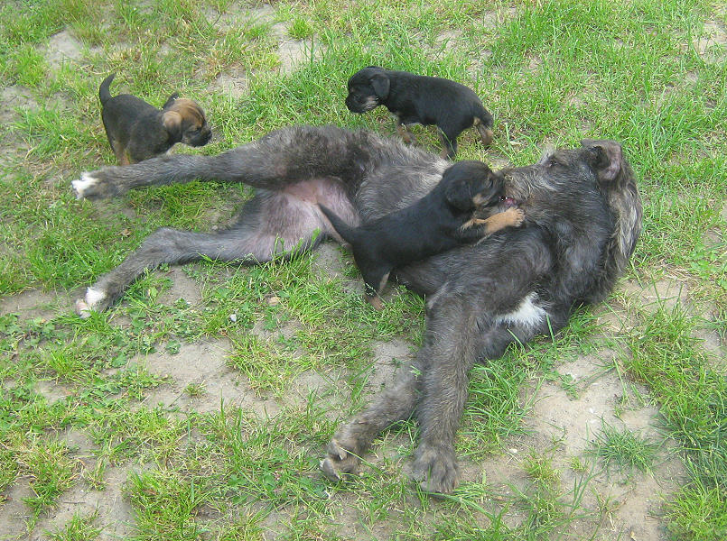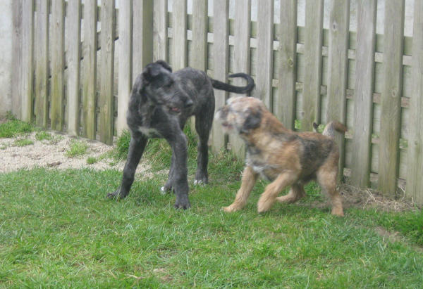 real fun to see how gentle she is with the border t. pups at play,