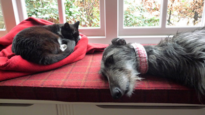 Kiri's dogs among the creatures on her stable yard. -a pictures says it all