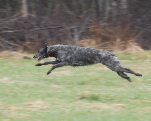 Anna (Anais) has now made her début in the show rings. She has behaved very well, trying to go to any hound or person to say "Hello, who are you".All judges so far and all deerhound people have liked her as much as we do. Her bite has improved very well and her lower canines are going right as they shall now. Her paws are a little flat still after the tooth shedding.